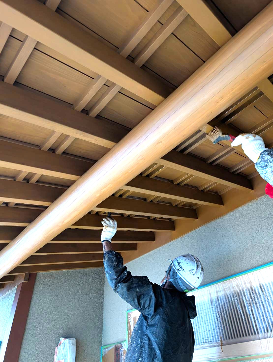 松本市内にて一般住宅の外壁全面塗装工事と、あわせて劣化が進んでいた雨どい(トイ)の修繕工事を行いました。 ■ 外壁塗装で住まいをしっかり保護 長年の紫外線や風雨により、外壁の色褪せや小さなひび割れが見られたため、今回は下
