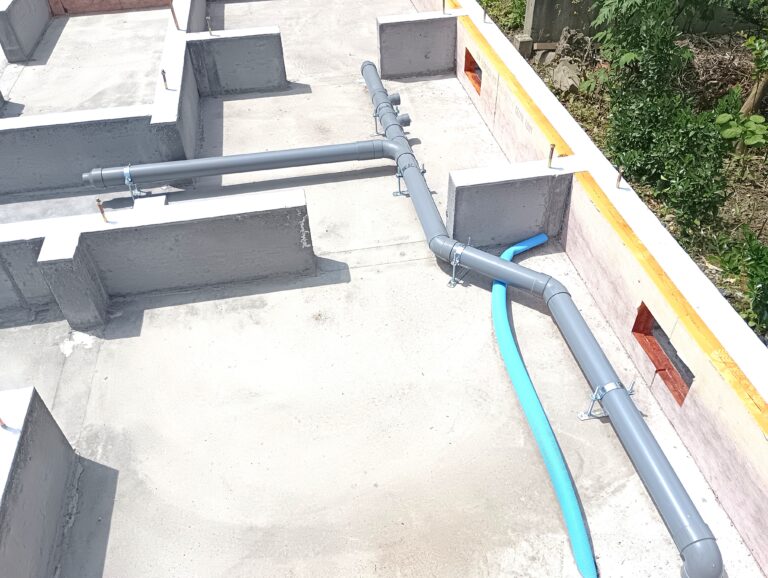 先日、コンクリート基礎工事と水道設備工事が無事に完了しました。